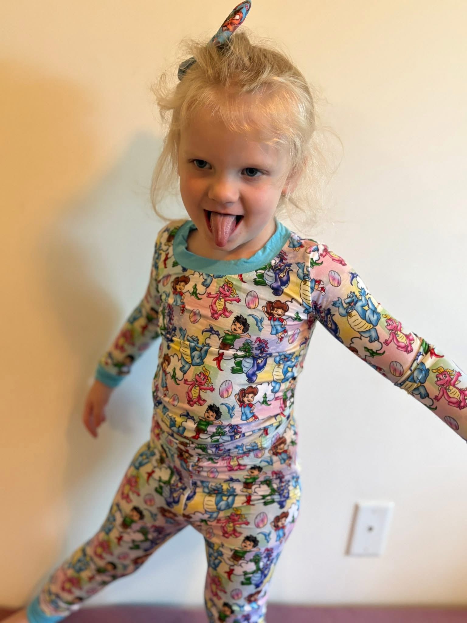 Please note that print colour and size may vary slightly in person compared to online photo. Our pjs are meant to fit snug to the body. Our products are never treated with flame-retardants or chemicals.