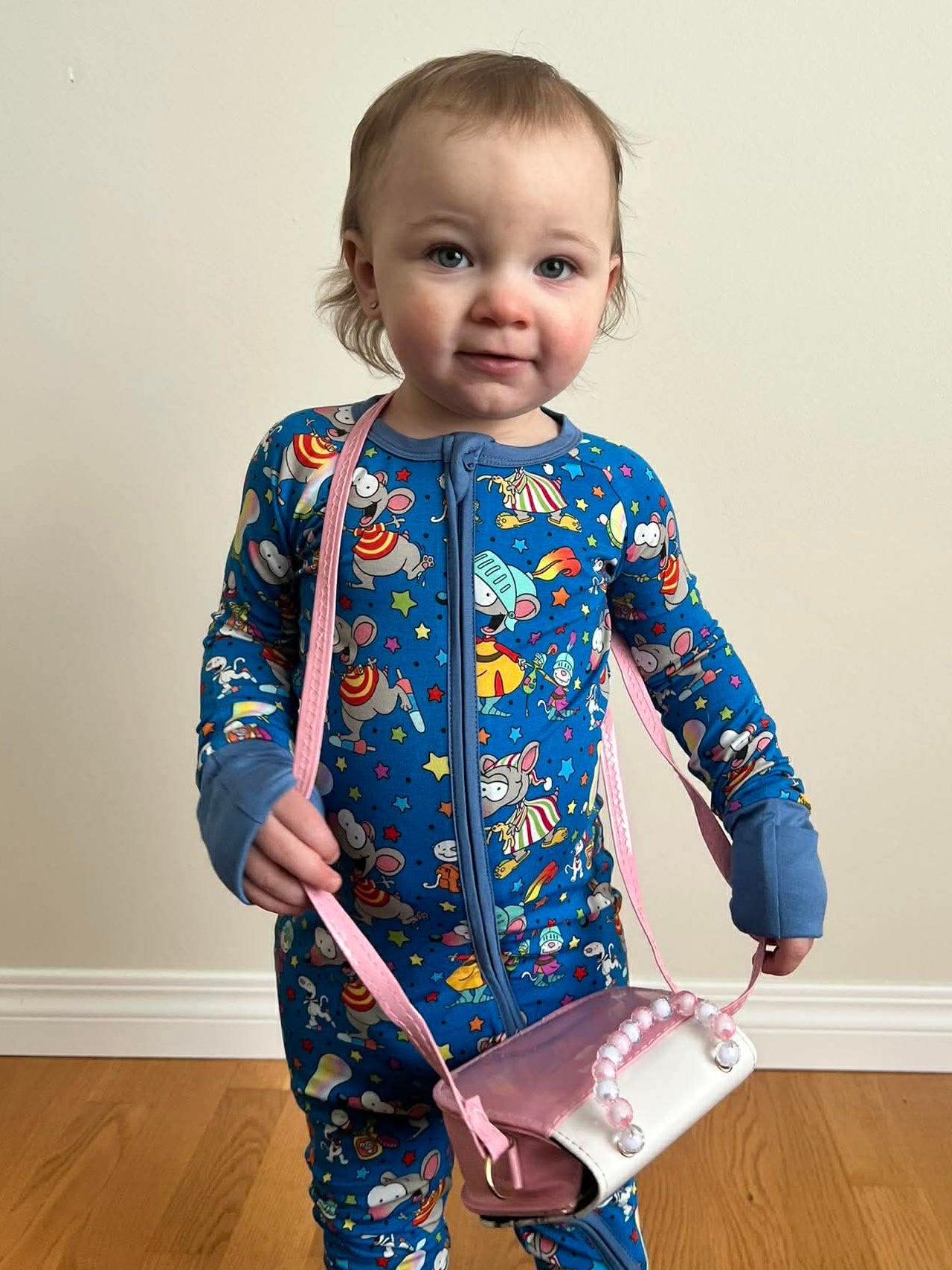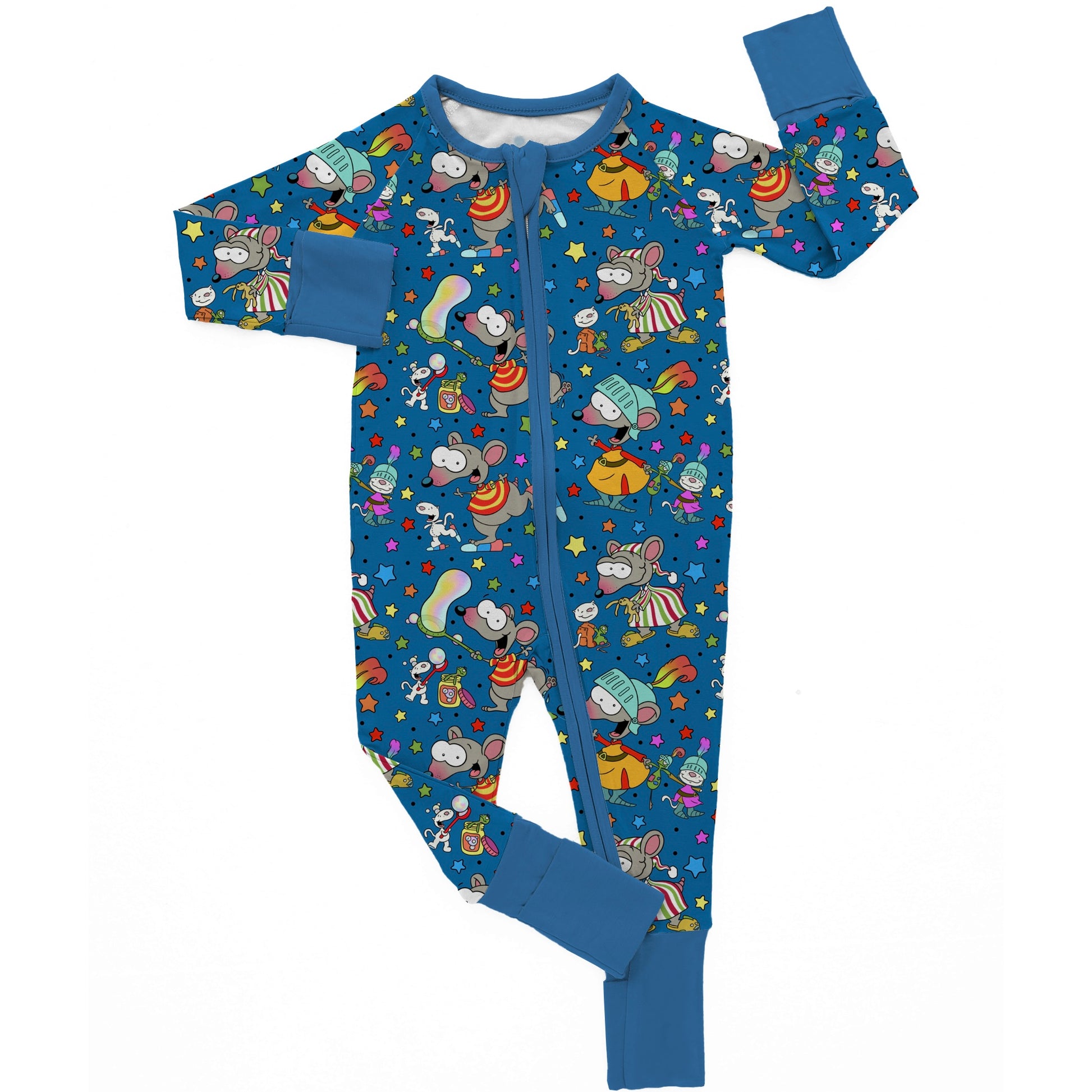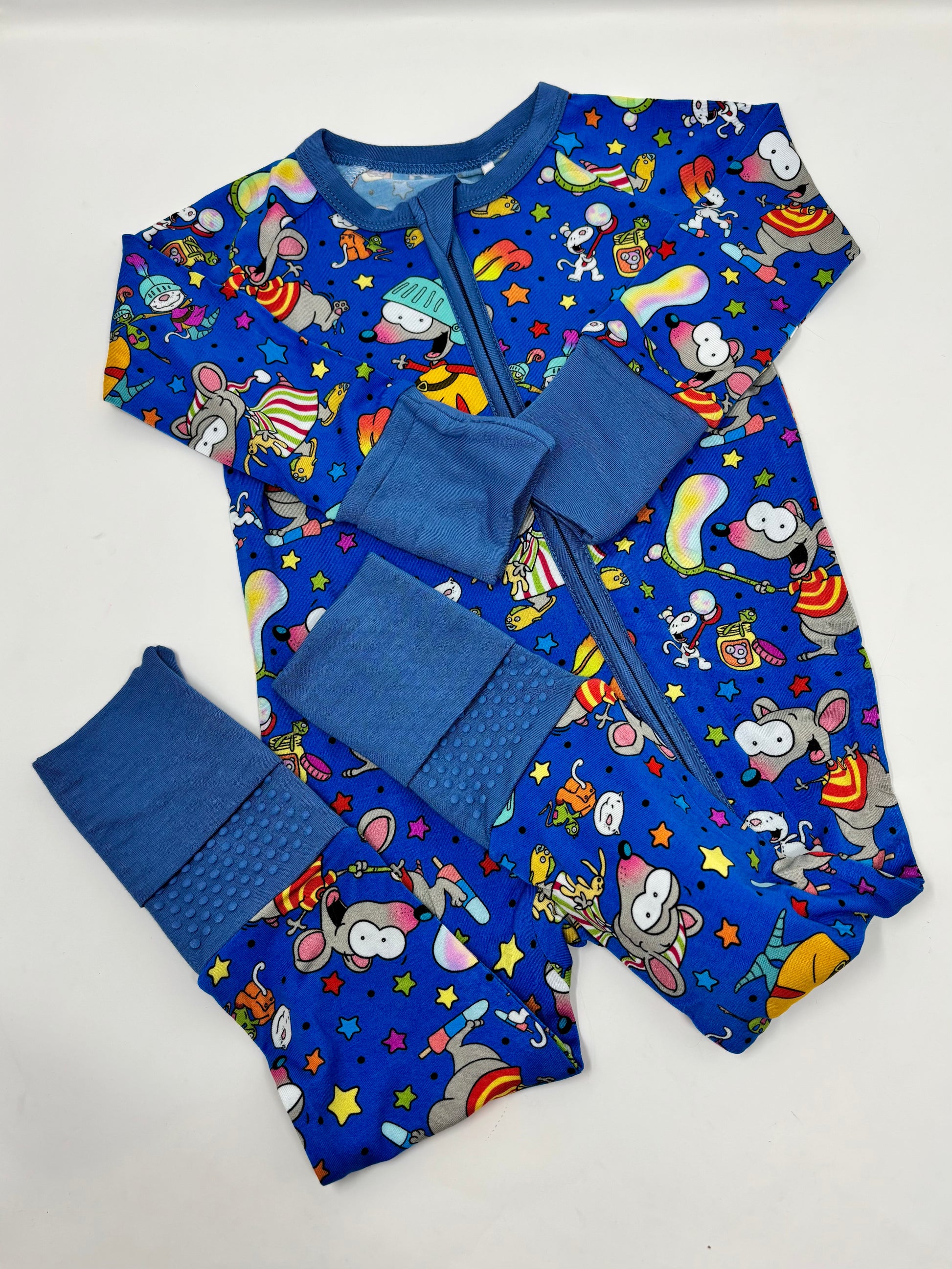 - Fold over mittens and feet (with non-slip foot grips)